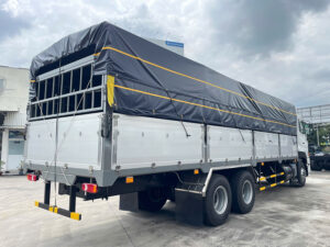 Thùng mui bạt dài ~9‑9,5 m giúp chở được hàng dài, nhiều kiện.